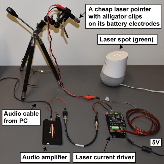 Использование лазера, способного прожигать 20мм стали, для атаки типа "отказ в обслуживании" на микрофон системы голосового управления, это оверкилл. Духовое ружьё дешевле.