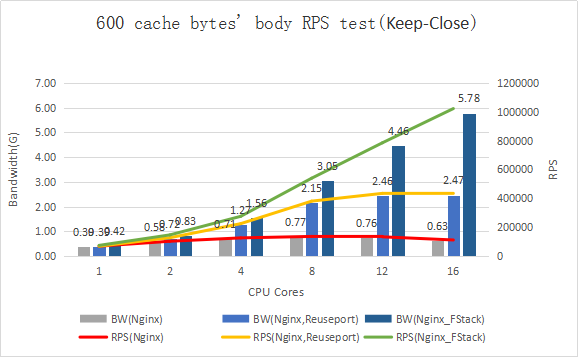 Подождите-ка, подождите-ка... Вон та верхняя картинка, с 600-байтными пакетами - там решение на F-Stack скейлится линейно с ростом нагрузки, тогда как ядерный стэк выходит на предел производительности. Это что, получается, сетевой стэк FreeBSD после трансплантации на Linux настолько уделывает родной стэк Linux'а?