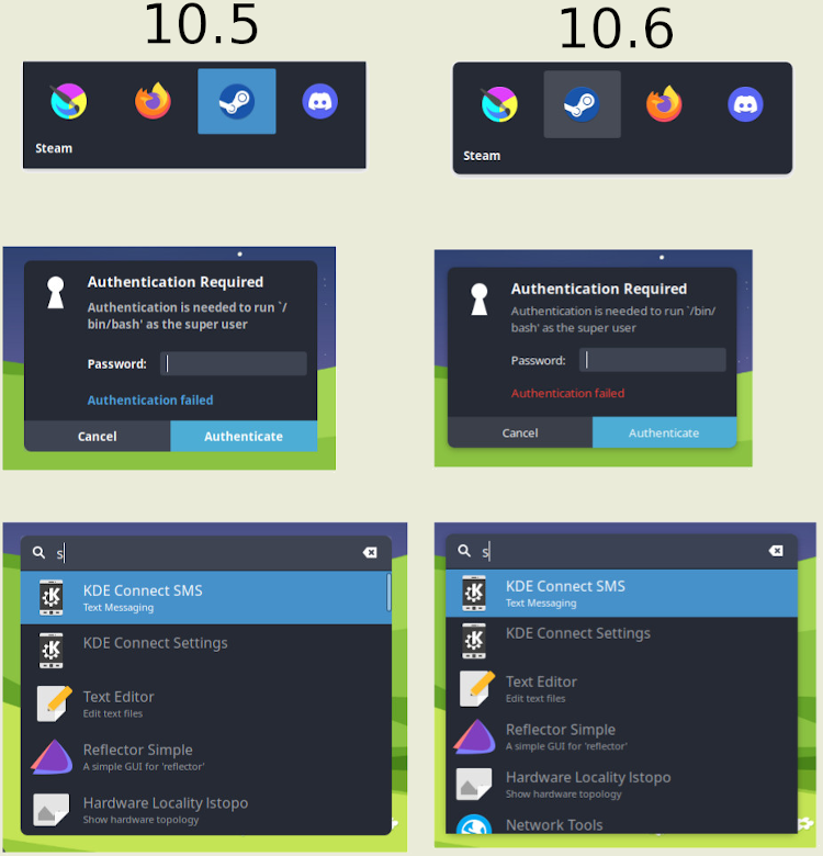• Модернизирована панель задач. Улучшена настройка размера панели. Доработаны размещаемые на панели виджеты для показа заряда аккумулятора и отображения часов. Изменены настройки панели по умолчанию для уменьшения расхождения местоположения панели и показываемых виджетов в разных дистрибутивах.
