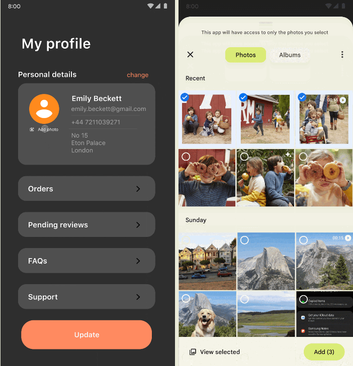 "Добавлена возможность выборочного предоставления полномочий для доступа к мультимедийным файлам. Если раньше для чтения мультимедийных файлов приходилось предоставлять доступ ко всем файлам в локальном хранилище, то теперь доступ можно ограничить только изображениями, звуковыми файлами или видео. "