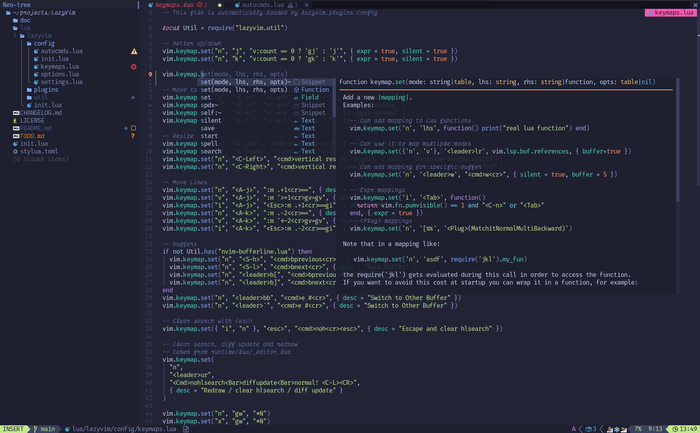 Подобным же сборкам NeoVim'а есть альтернатива - Helix, где все выглядит довольно лаконично - никаких иконок, вкладок, дерева файлов на четверть экрана, но есть встроенный аналог Telescope. При этом все нативное, т.е. не надо каждый раз молоть тонну скриптов и не надо париться за их надежность - просто Ctrl+z, и сделали mkdir ручками.
