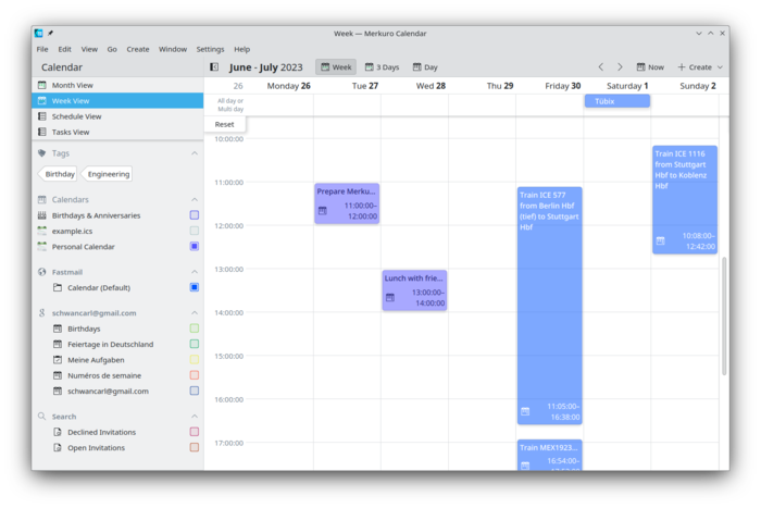 • Календарь-планировщик Kalendar переименован в Merkuro так как старое название перестало соответствовать нынешней функциональности приложения, которая расширена средствами для работы с адресной книгой. В планах интеграция в Merkuro почтового клиента. Переработан интерфейс приложения, добавлена возможность обособленной работы в режимах календаря-планировщика и адресной книги.