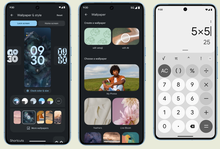 • Расширены возможности по настройке внешнего вида интерфейса. Упрощён интерфейс выбора фоновых изображений. Добавлена возможность размещения своих ярлыков на экран блокировки, например, для быстрого доступа к ридеру QR-кодов. Добавлен новый набор шаблонов оформления интерфейса блокировки экрана, предлагающих разные шрифты, виджеты и цвета, и поддерживающих использование AI для адаптации оформления к текущей ситуации (например, виджет с прогнозом погоды может быть сделан более заметным в случае предстоящего резкого ухудшения погоды). Добавлен новый генератор фоновых изображений, использующий машинное обучение для создания изображений по текстовому описанию пользователя. Предоставлена возможность включения монохромной темы оформления.