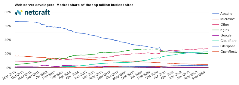 В графике самое прикольное, что за тем же nginx в большинстве случаем стоит apache)