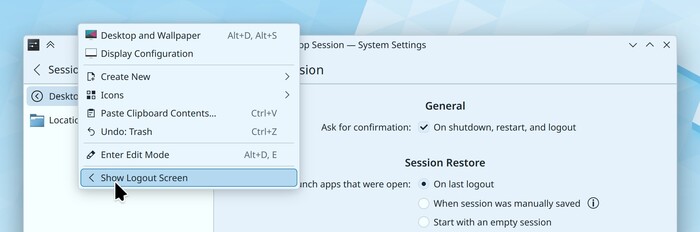 Кстати не понятна вот эта тема с логаут скрином что по умолчанию раньше нажимая ребут из панели тебя выкидывает в окно логаута где 30 секунд отсчёта и все кнопки ребут, выключить спать. Хотя ты вроде ребут хотел теперь сделали нормально.