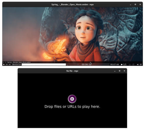 mpv — такой мощный видеоплеер, что лишь чуть-чуть не дотягивает до универсального просмотрщика картинок (не может гигапиксельные картинки декодировать) и универсального проигрывателя аудио (не умеет всякие экзотические форматы и нет плагинов).