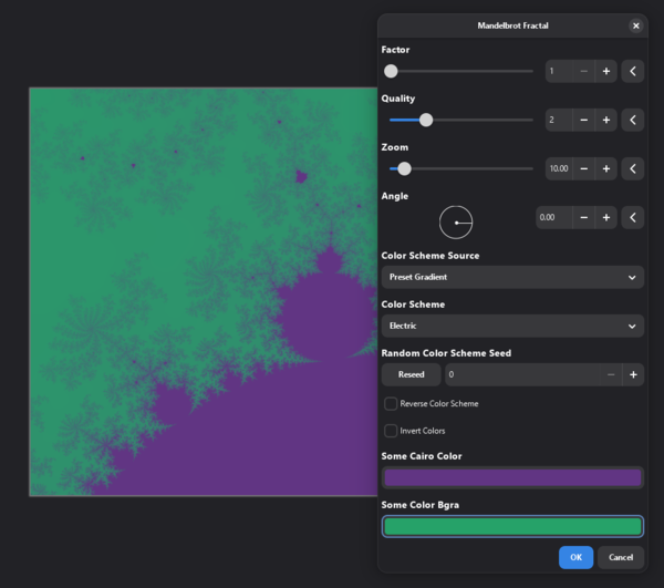 - В диалоги с параметрами эффектов добавлена возможность выбора цвета.