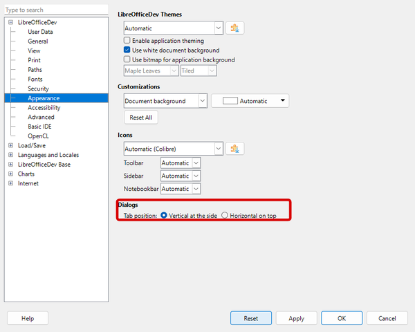> Добавлена опция для использования в диалогах горизонтальных вкладок вместо вертикальных