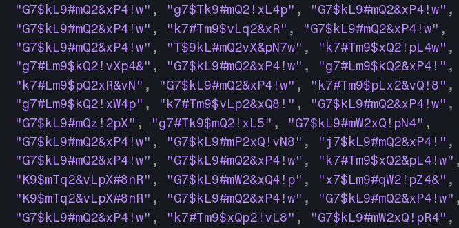 > Пароли сочетали в себе символы в разных регистрах, спецсимволы и числа, но лишь выглядели безопасными, а на деле имели минимальную энтропию, формировались по типовому шаблону и при повторных запросах образовывали закономерность