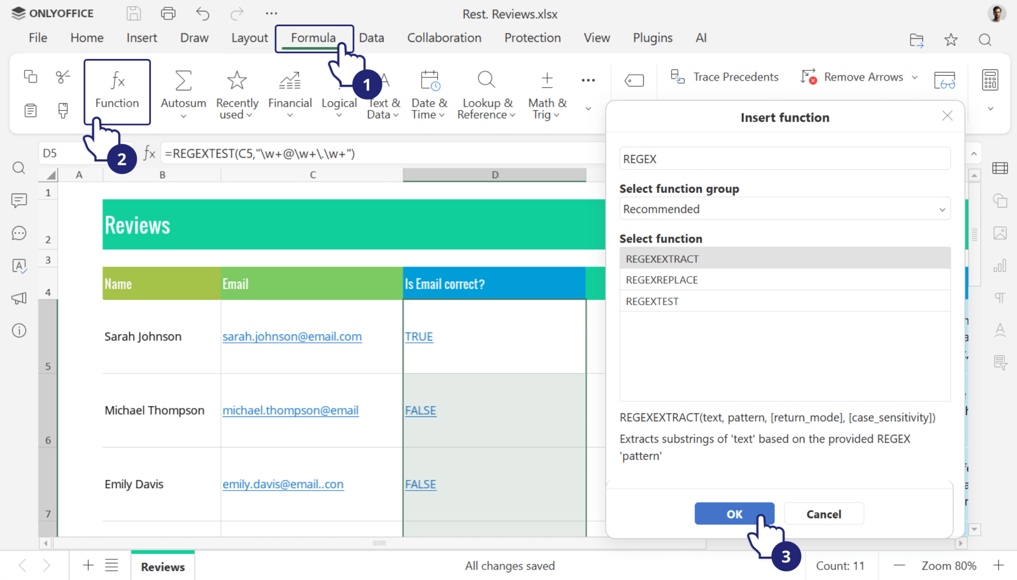 - Добавлены функции REGEXTEST, REGEXREPLACE и REGEXEXTRACT, позволяющих использовать регулярные выражения для поиска, извлечения и замены в тексте.