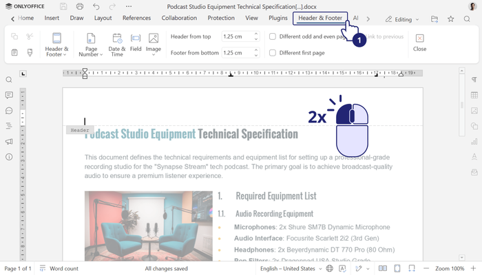 - Настройки верхнего и нижнего колонтитулов объединены и выделены в отдельную вкладку.