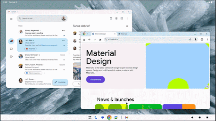 Мобильные приложения, созданные с использованием механизмов построения адаптивного интерфейса, в десктоп-режиме выглядят как типовые настольные приложения. Из возможностей для создания адаптивных приложений отмечены объект Display (позволяет отслеживать изменение настроек экрана и перемещения приложения на другой экран) и API для обработки событий с клавиатуры и мыши. В оконный менеджер Jetpack WindowManager добавлены новые классы экранов - Large и Extra-large. Добавлены библиотеки Navigation 3 и Compose Material 3 Adaptive для создания интерфейсов, подстраивающихся под размер экрана.
