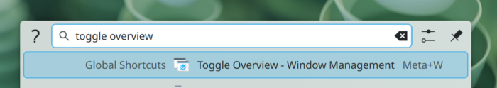 - В KRunner по умолчанию включён плагин вывода информации о глобальных комбинациях клавиш.