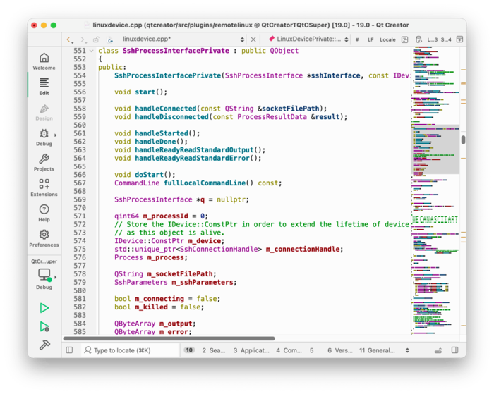 В состав встроен простой MCP-сервер для интеграции с AI-ассистентами, позволяющий открывать файлы и проекты, запускать сборку, производить отладку. Упрощена настройка сборки на внешних устройствах - добавлена кнопка Run Auto-Detection для автоматического определения версии Qt, компилятора, отладчика и CMake после регистрации устройства. Реализована поддержка прямого доступа к файловым системам подключённых устройств, Android-устройств и эмуляторов.