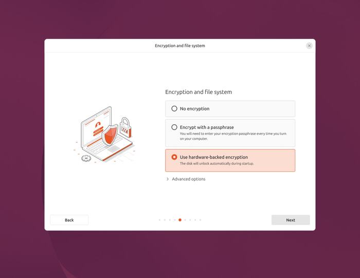 > Расширены возможности по использованию полнодискового шифрования, не требующего ввода пароля разблокировки диска при загрузке, благодаря хранению информации для расшифровки ключей в TPM