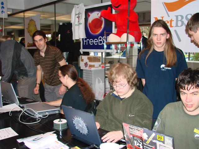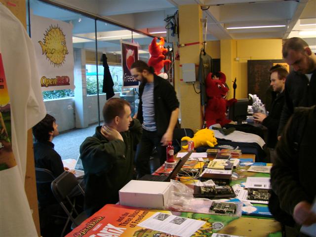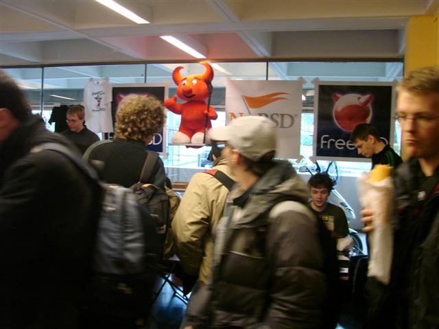 А рядом расположился стенд OpenBSDшников (конечно же с плюшевой рыбой-эмблемой
