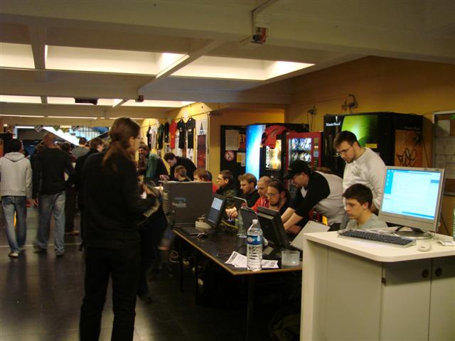 всё время стоял, впрочем отбоя от посетителей не было. На единственном лаптопе