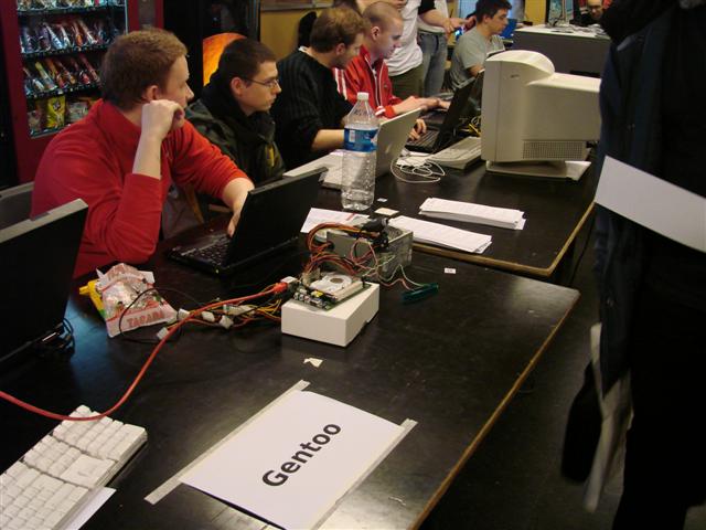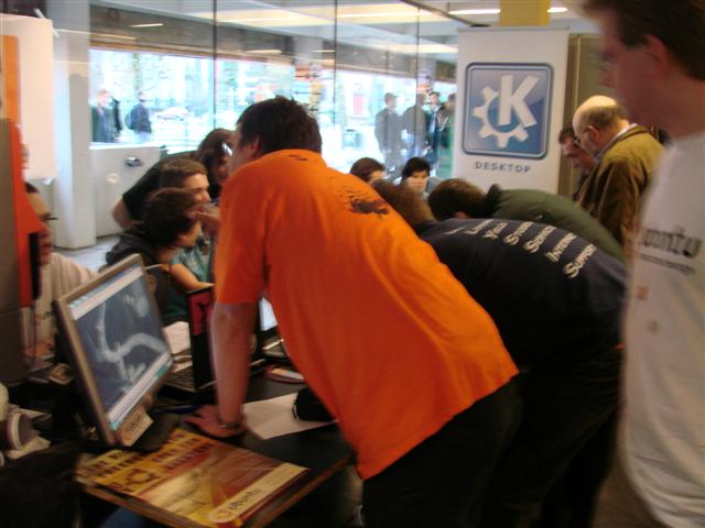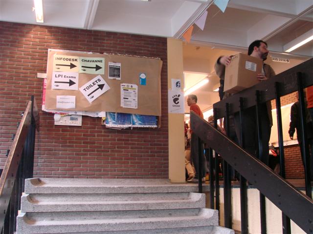 Организаторы подшутили над KDEшниками и Gnomами - прямо напротив стенда KDE