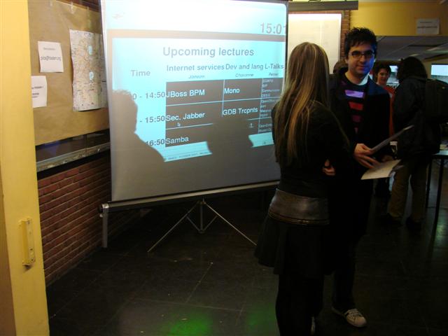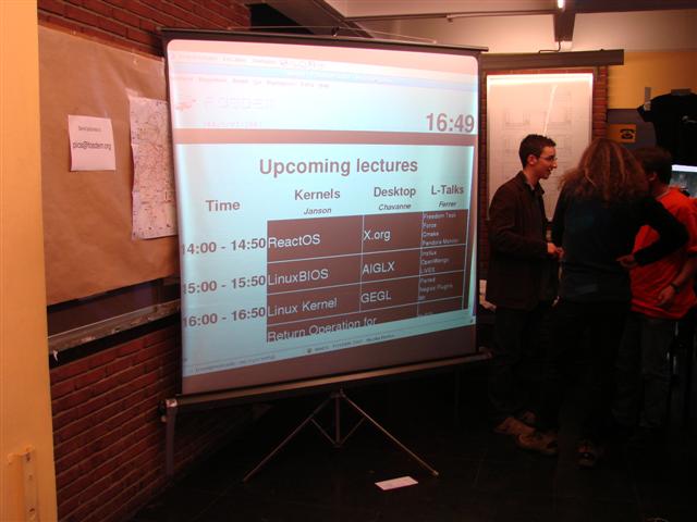 На проекторе отображался список ближайших по времени докладов с указанием места