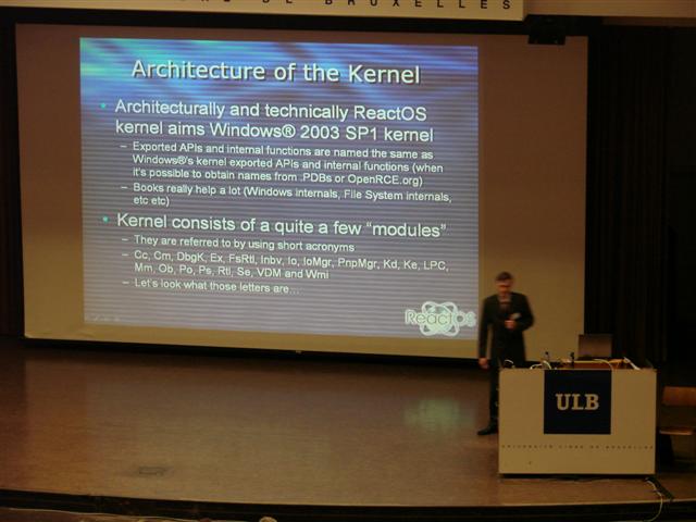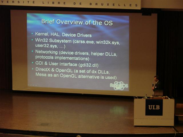 Следующей презентацией было введение в ReactOS от Алексея Брагина, нашего соотечественника (вот запись):