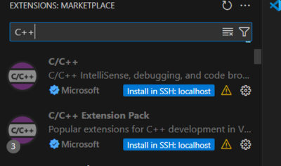 В окне VS Code, подключённому к ВМ, устанавливаем плагин C/C++ и C/C++ Extension Pack.
