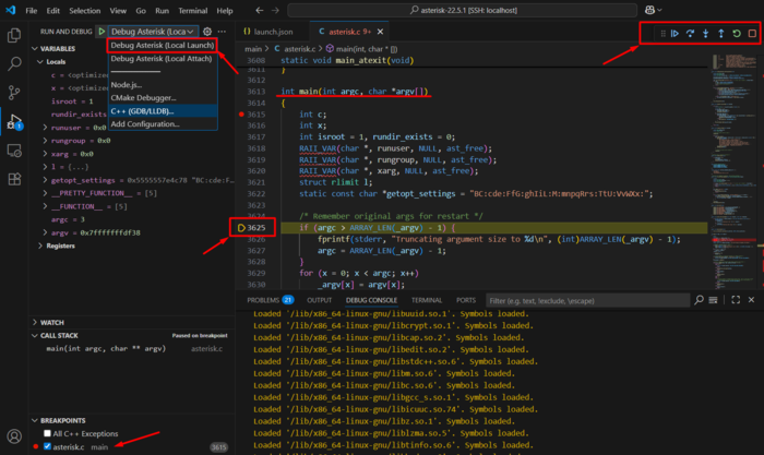 и строчку Asterisk Ready. Можно приступать к отладке.